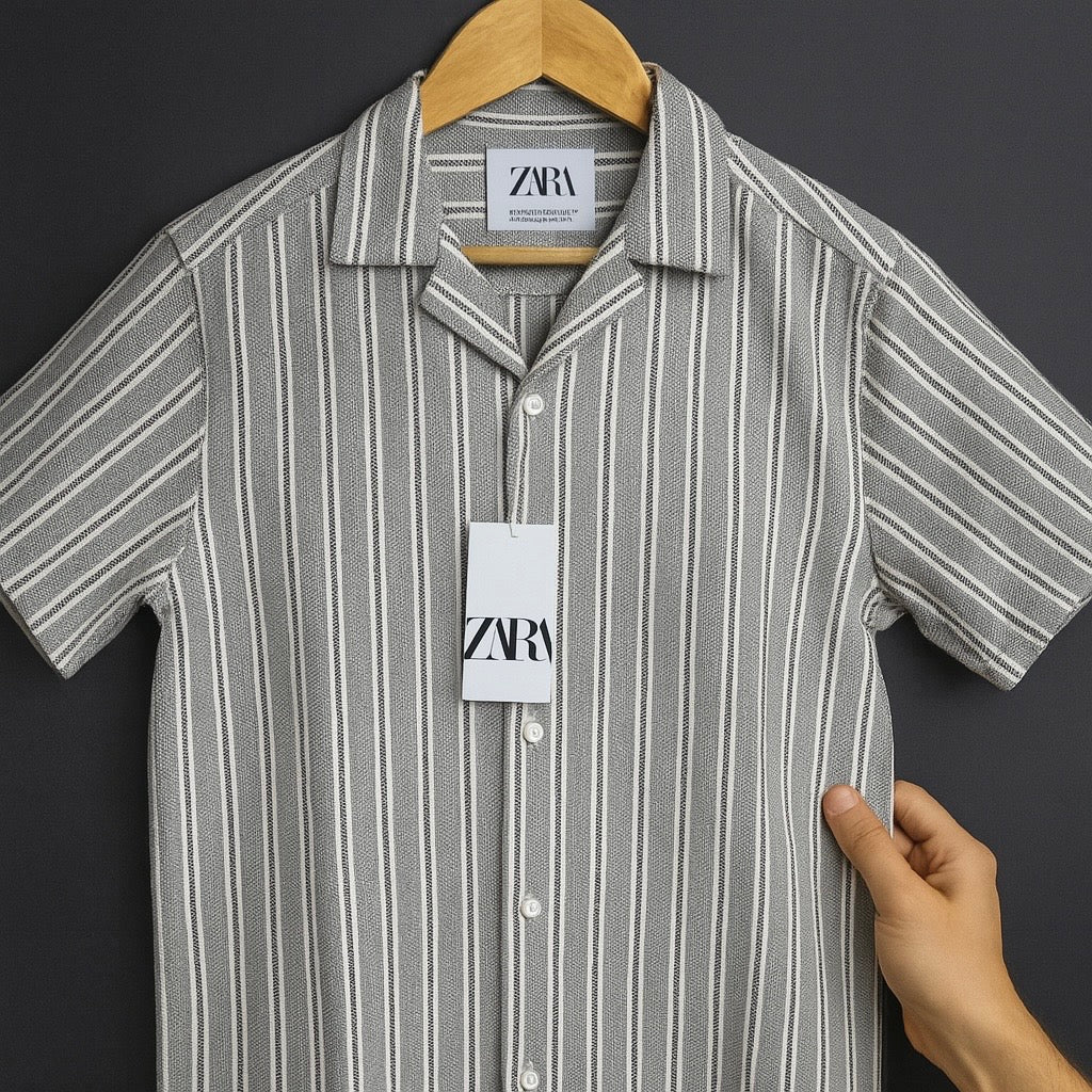 Premium Striped Textured Short Sleeve Shirt – Light Grey| CD-HSC16