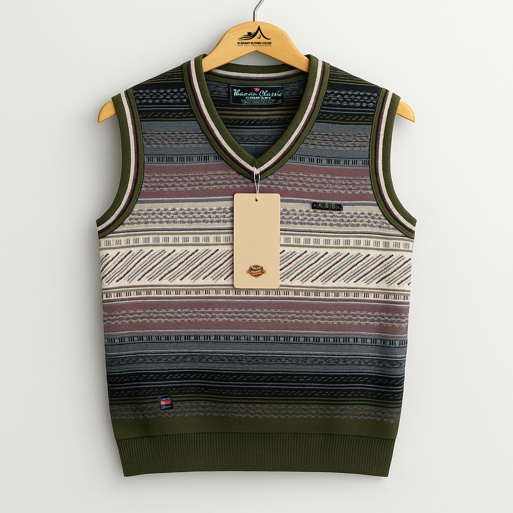 Upgrade your winter wardrobe with this elegant sleeveless sweater vest, crafted for men who value style, comfort, and versatility. The premium knit texture combined with a timeless patterned design makes it perfect for both casual and smart looks.