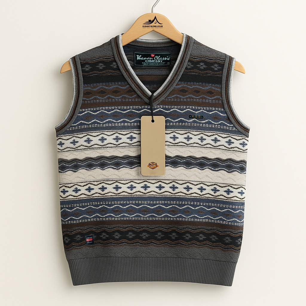 এই মার্জিত স্লিভলেস সোয়েটার ভেস্টটি দিয়ে আপনার শীতকালীন পোশাকটি আপগ্রেড করুন, যা স্টাইল, আরাম এবং বহুমুখীতার প্রতি শ্রদ্ধাশীল পুরুষদের জন্য তৈরি। প্রিমিয়াম বুনন টেক্সচারের সাথে একটি কালজয়ী প্যাটার্নযুক্ত নকশা এটিকে নৈমিত্তিক এবং স্মার্ট উভয় চেহারার জন্যই উপযুক্ত করে তোলে।