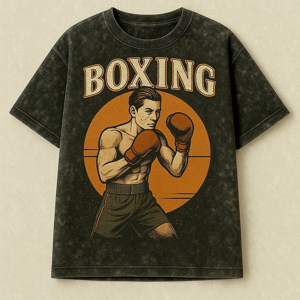 BOXING Retro Graphic Drop Shoulder– Acid Wash Style | Pre-Order from Abroad.