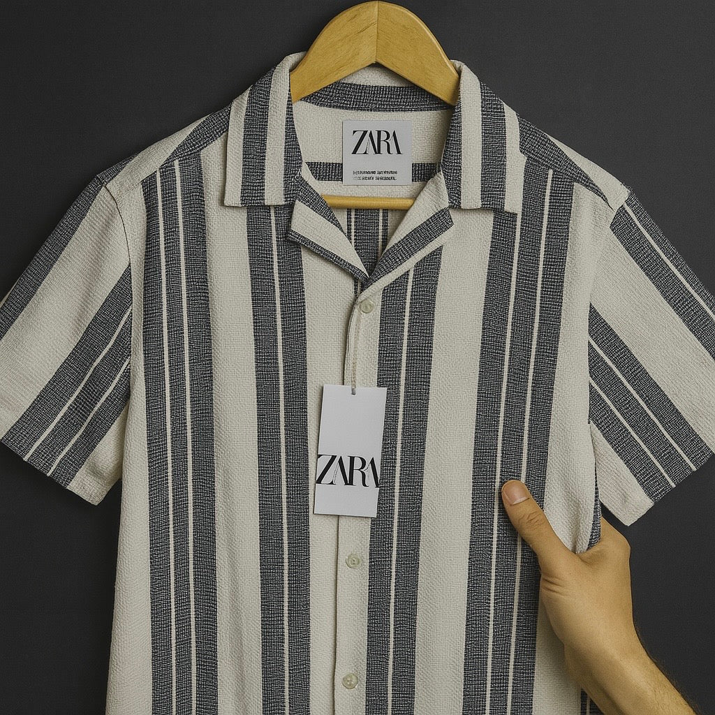 Black & White Vertical Stripe Textured Shirt – Summer Smart Casual Style| CD-HSC3