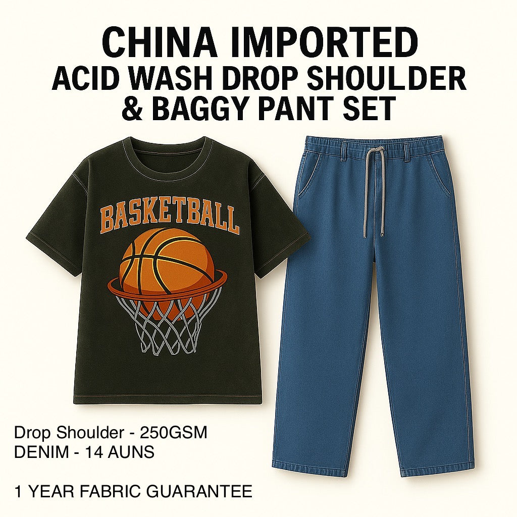 Basketball Graphic Drop Shoulder Tee & Drawstring Baggy Pant Set – China Imported| CD-SDS2