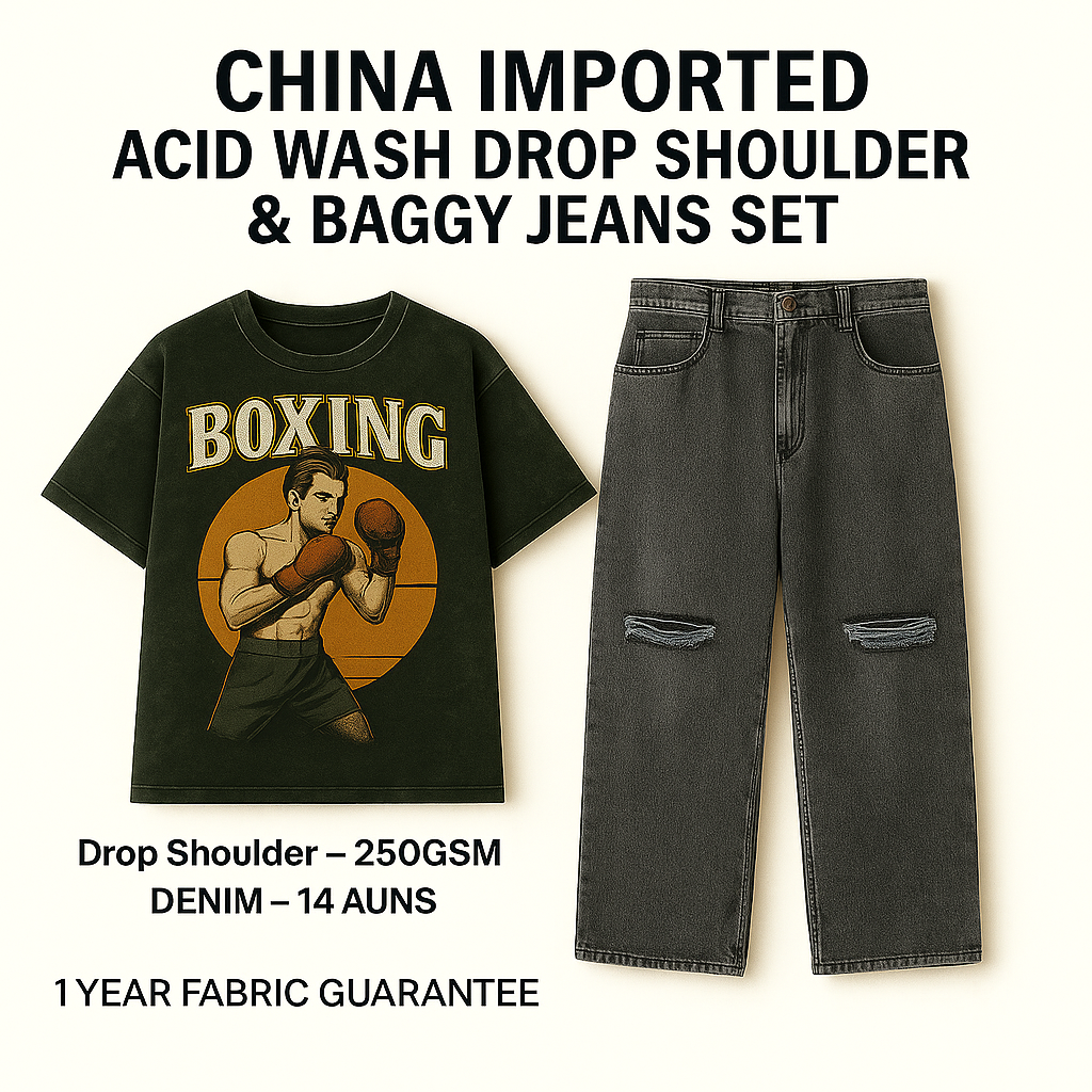 Unleash your style with our bold and artistic China Imported Drop Shoulder & Baggy Jeans Sets – crafted for the trend-savvy, the bold, and the unstoppable. Whether you’re into motocross, boxing, skateboarding, basketball, retro vibes, or just fearless fashion — there’s a graphic that speaks for you.
