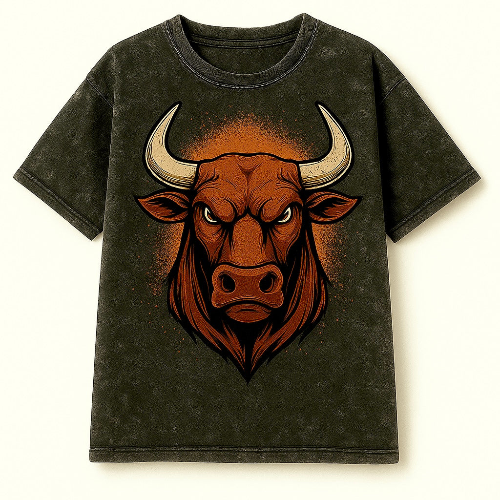 FIERCE BULL Acid Wash Tee – Attitude-Loaded Design – Pre-Order.