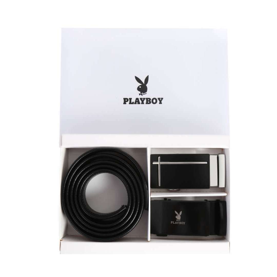 Leather belt man [Playboy] casual trendy business versatile young people's belt double buckle waistband belt gift box trend.