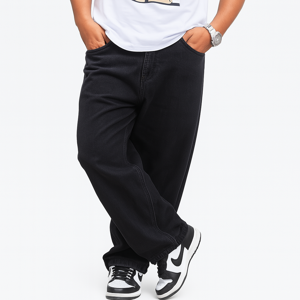 Men’s Loose Fit Solid Black Denim Jeans – Minimal Street Style| CD-MDP4