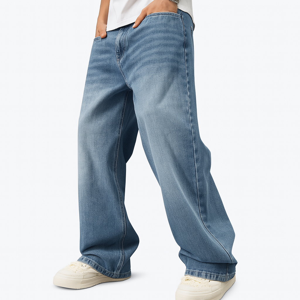 Men’s Wide Leg Washed Blue Denim Jeans – Oversized Relaxed Fit| CD-MDP9