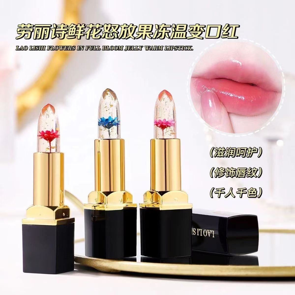 3pis Combo Douyin petal jelly temperature-sensitive lip balm lipstick moisturizing, hydrating, preventing cracking, waterproof, non-stick cup, autumn and winter.